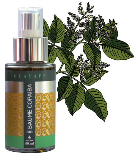 Toujours à la recherche de trésors végétaux, Guayapi a rapporté de ses voyages le baume de Copaïba, une oléorésine 100 % naturelle extraite de l’arbre Copaifera officinalis, lequel se trouve sur les terres d’origine des Indiens Sateré Mawé en Amazonie.