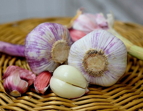 - Ôtez les germes des gousses d’ail, détaillez le poivron en tout petits dés.