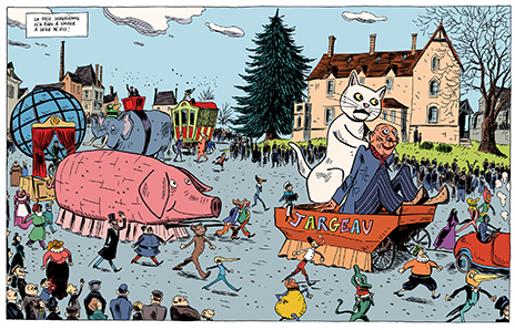 L’irrésistible biographie toute en poésie consacrée à Petit Pierre et son manège dans La mécanique des rêves de Daniel Casanave et Florence Lebonvallet dessine un parcours différent savoureusement traduit dans le langage de la campagne. À l’inverse d’un déclic, l’œuvre de Petit Pierre se déroule comme un assemblage continu sur toute une vie. Pierre Avezard (1909-1992) est né difforme, atteint du syndrome de Treacher Collins dans un petit village du Loiret. Souffre-douleur dès l’enfance, il est exclu de l’école et devient vacher en travaillant de ferme en ferme. Il commence très tôt à fabriquer constructions et automates, s’attaquant à partir de 1937 à son manège, en ingénieur autodidacte. Ce chef d’œuvre de mécanique mélange toutes ses inspirations : il y reconstruit la tour Eiffel ou l’Atomium de Bruxelles, le téléphérique du Mont Blanc ou la Bonne Mère de Marseille au milieu de ses vaches bien aimées, des danses du village et des véhicules de toutes sortes. La machinerie onirique émerveille. C’est qu’il y a dans le manège de Petit Pierre, toujours visible à la Fabuloserie dans l’Yonne (voir encadré ci-dessous), comme dans toutes les œuvres de ces artistes, au-delà de la nécessité de faire, un investissement si intense dans la création qu’il relève sans doute plus du don de soi que d’un besoin de développement personnel. C’est la magie des étincelles !