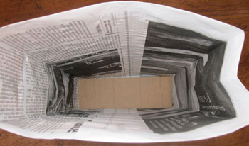 - appuyer avec le poing, par l’intérieur, dans le fond du sac et y coller un morceau de carton pour consolider le tout