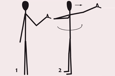 1. La main gauche est dans le prolongement du bras tendu vers le bas.