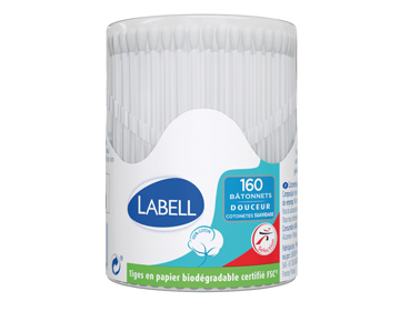 Depuis le 16 juillet 2018, l’ensemble des cotons-tiges plastiques de la marque Labell ont disparu des rayons Intermarché pour faire place à ces bâtonnets ouatés dotés d’un stick en papier, entièrement biodégradable et compostable.