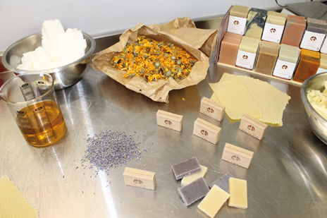 Mais, attention, ils ne veulent pas fabriquer n’importe quels savons. Ils ont choisi la saponification à froid, la méthode la plus naturelle dont l’avantage est que le procédé ne nécessite pas de cuisson : c’est en remuant qu’on lance l’action chimique entre les ingrédients de base, c’est-à-dire soude caustique, graisses et eau, tous pesés au gramme près.