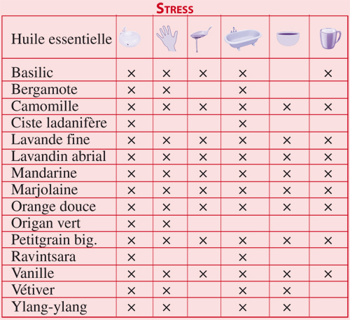 - Pour chasser l’appréhension, l’anxiété, le trac, la nervosité, sur un mouchoir, déposez quelques gouttes d’huile essentielle de camomille romaine et de lavandin.
