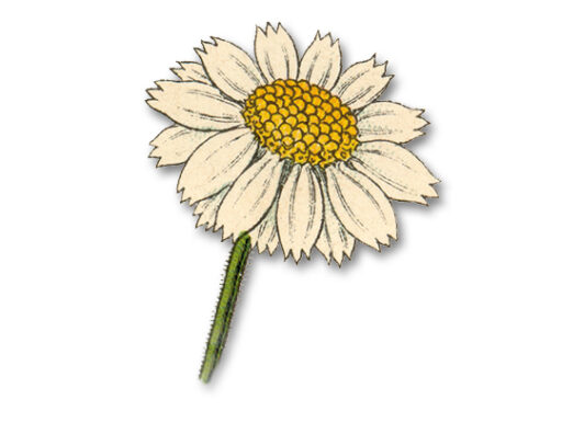 La camomille romaine, camomille officinale, Chamaemelum nobile ou Anthemis nobilis, est une plante d’environ 30 cm de haut, qui aime les sols pauvres et sableux. On la reconnaît à ses feuilles profondément divisées et à ses capitules solitaires de fleurs blanches au cœur jaune.