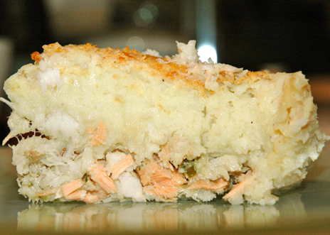 - Étalez le poisson dans le fond, répartissez l’échalote par-dessus, saupoudrez de muscade, couvrez de la purée, puis de la chapelure et enfournez 30 min.