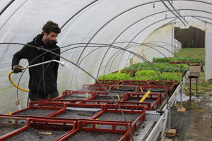 La « spécificité de [sa] ferme » – le maraîcher en est fier – est d’avoir réuni une équipe de quatre personnes autour de lui. « Rachel travaille avec moi et est en CDI depuis avril 2016. Lucie est apprentie à la ferme depuis septembre 2017. Alexandre est stagiaire en reconversion professionnelle, et l’autre stagiaire, Rémi, est en IME (institut médico-éducatif). » Cette main-d’œuvre permet à Xavier d’avoir une vraie qualité de vie, « ce qui me libère du temps, pour mes enfants, pour les papiers, pour les projets. Je ne me rémunère pas bien, mais c’est un choix personnel, pour pouvoir m’occuper de mes deux fils. » Xavier a trouvé un équilibre de vie qui lui convient. « Je prends même des vacances, ce qui peut paraître fou en agriculture », s’amuse-t-il. La ferme de Toulotte fournit un salaire complet à chacune des deux employées. À terme, Xavier souhaite pouvoir se rémunérer également : « Je serai vraiment content quand on pourra sortir trois salaires sur ces 4 hectares. »
