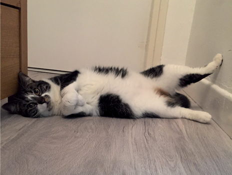 Tous ces soucis ne l’empêchent pas de vivre joyeusement, c’est une petite minette pleine de vie et qui a la rage de vivre.