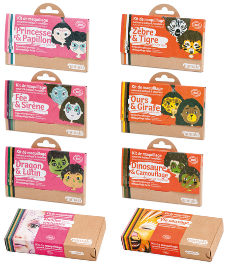 - Maquillage de déguisement pour enfants. Namaki. Le kit 8 couleurs : 29,90 €. Le kit 3 couleurs : 9,90 € (prix de vente conseillés). En vente en magasins de jouets indépendants, magasins bio et sur le site namaki.fr