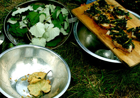 Ingrédients : farine (de petit épeautre de préférence), eau et plantes sauvages ramassées.
