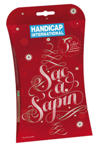 Biodégradable et compostable, solidaire, le sac à sapin vous facilite la vie en vous évitant les épines plantées dans le tapis, et elle aide à vivre tous ceux qui bénéficient des programmes de développement et d’urgence qu’Handicap International finance grâce à l’argent collecté. En 2013, 500 000 sacs à sapin ont