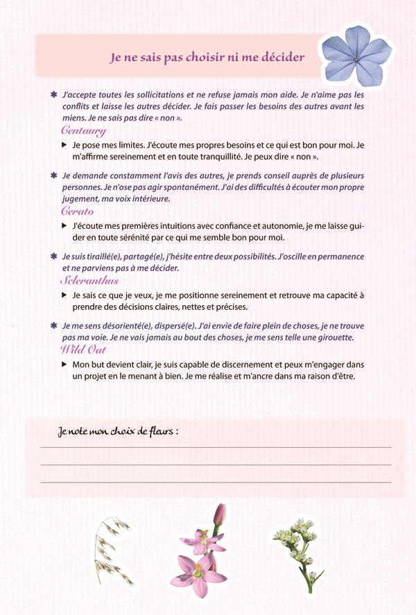 Le Dr Bach attribuait les causes des maladies à des conflits ou des déséquilibres émotionnels inté­rieurs. Et, pour y remédier, il a mis au point 38 élixirs très particuliers, les « fleurs de Bach », toujours utilisées aujourd’hui. Pour choisir celles qui vous conviennent, Maud Gracien, psychothérapeute, explique dans Mon cahier des Fleurs de Bach, comment faire soi-même son élixir en fonction de ses besoins. Morceaux choisis.