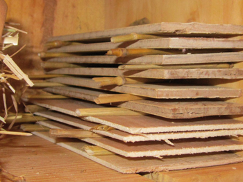 – Poser dessus une autre planchette et encore des morceaux de paille.