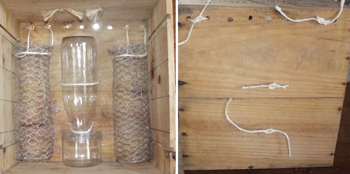⇒ Derrière la caisse, ajuster les nœuds des cordelettes et couper le surplus. La mangeoire est terminée !!!